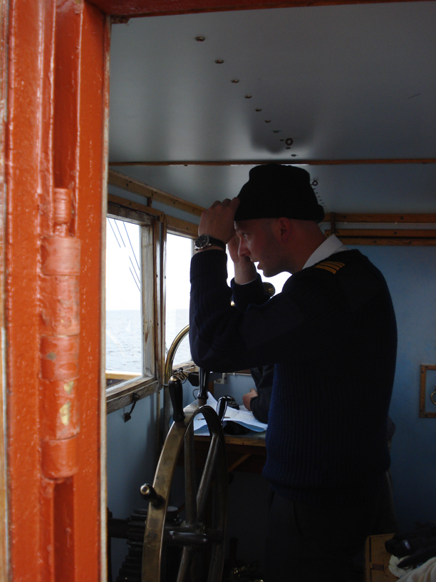 n the engine room Kimmo and Jari did their job outstandingly as did Pekka on the deck. Later I heard that the biggest challenge in the engine room was syncronizing the input of wood to furnace with the rolling of the steamer. The furnace door opened and closed in the rhythm of rolling. I did not notice anything as we traveled as in any weather. Of course, not as fast as container ships we saw on our journey.