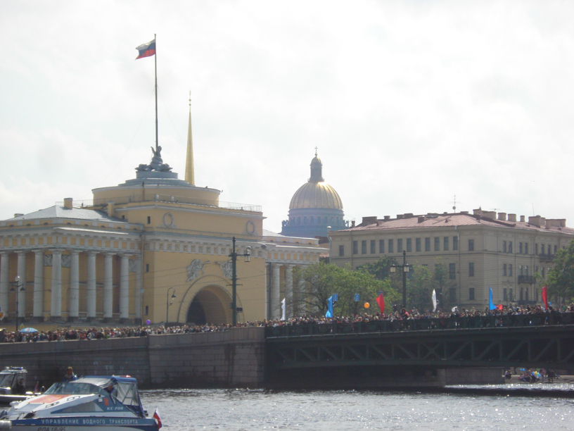 On Friday morning we, the shipmasters, left to make a simple reconnaissance tour on the river Neva at the area of anchorage. The idea of the regatta was, that during the 308th anniversary of St. Petersburg we would first be at anchor next to the Peter and Paul Fortress and then make a short round trip as a conwoy in the area restricted by bridges (between the Peter and Paul Fortress and the Hermitage). This would happen on Saturday and then we would leave the Neva on Sunday evening.