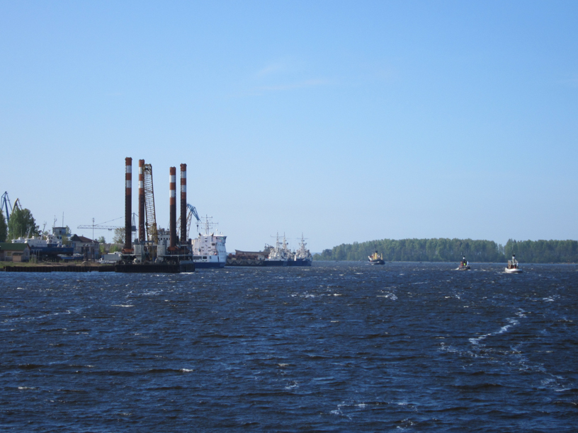 As the forecast had already predicted, the dawn arrived cold and windy. After a short meeting with other shipmasters, the convoy decided to set sail as planned apart from the smallest of the steamboats, Otso. Otso stayed at Primorsk for one day waiting for better weather to cross the Gulf of Finland. After leaving the port, we saw the huge oil port of Primorsk on our left side and soon afterwards, when the shelter offered by the islands on the right ended, we entered quite a rollercoaster for lake Saimaa sized steamboats. The rolling of Hurma was fast as the hull was heavy at the bottom: the steamboat was originally to be an icebreaker. For me personally, the biggest nuisance was created by the hooks of window attachment at the ceiling of the bridge. During the rolling of the steamer, I hit my head to those hooks time after time. The scratches I had did not heal during the two weeks time: perhaps there was something on the water of Neva that we used for hand and face washing.